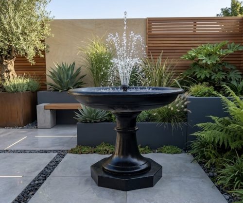 New Product – Circular Richmond water fountain with Riviera bowl and Horse shoe sculpture