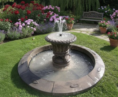 2 Tiered Edwardian Fountain, Laurel Single Pool Surround