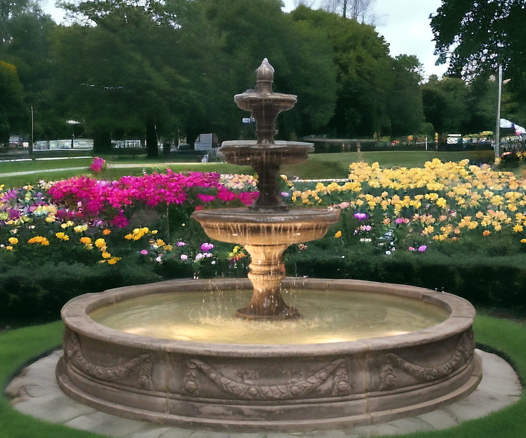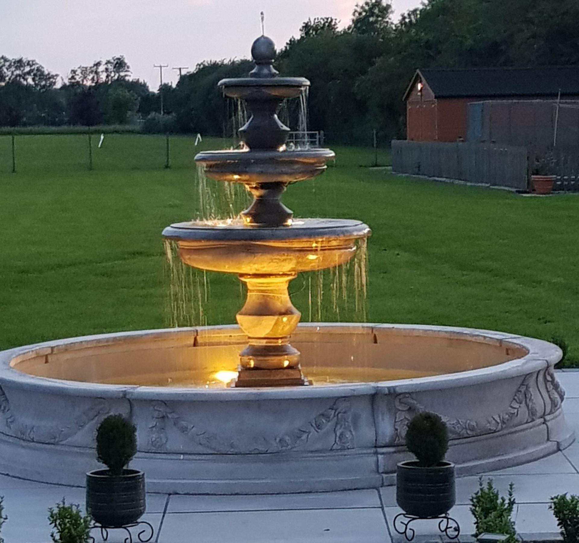 3 tiered Edwardian fountain or 3 Graces fountain with large Lawrence pool surround. Great looking pool surround, nothing else like it in the U.K. Complemented with our classical 3 tiered Edwardian fountain or our beautiful large 3 Graces fountain.