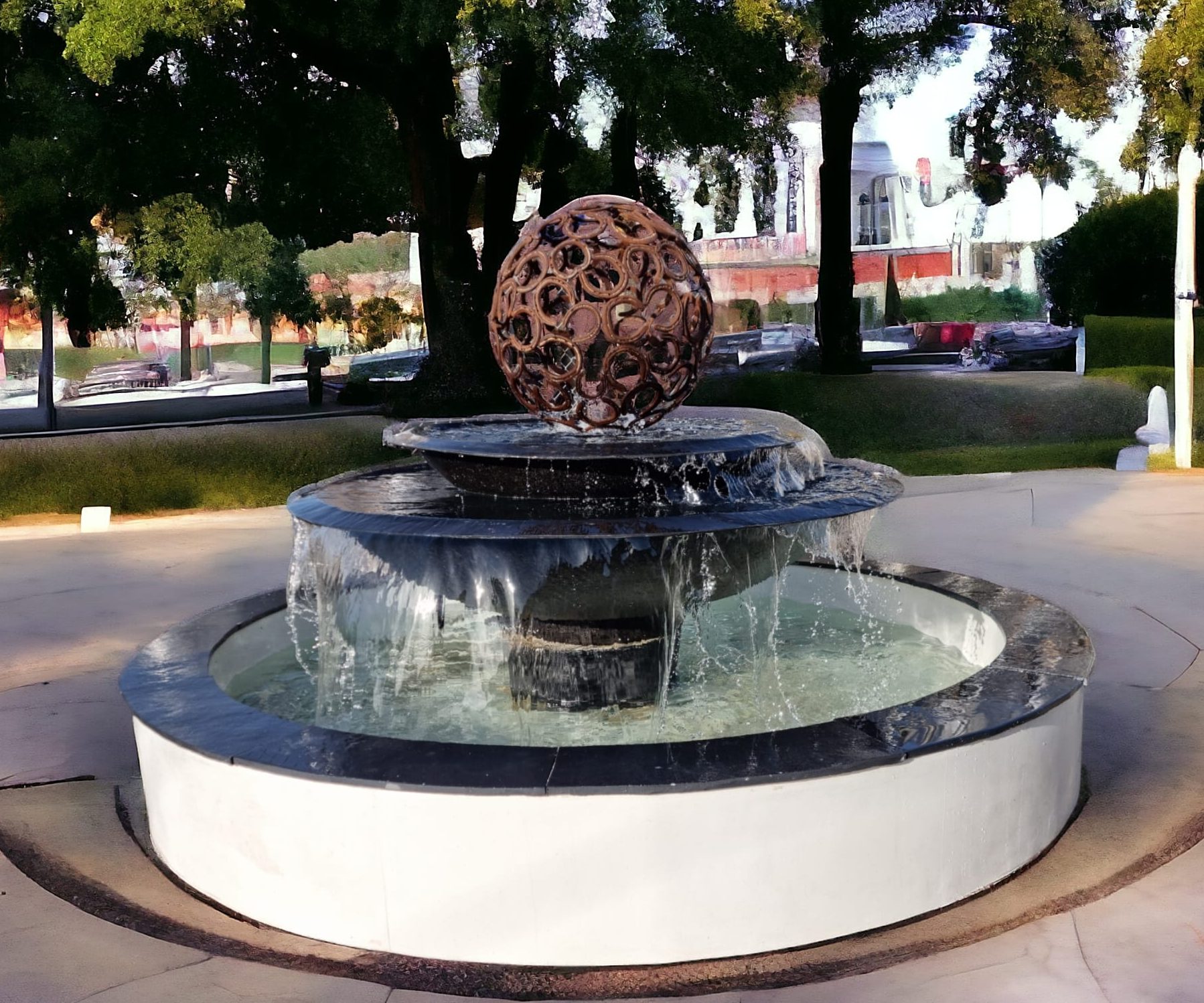 To see the Deux Riviera water fountain with Horse shoe sphere running on YOU TUBE Please click here