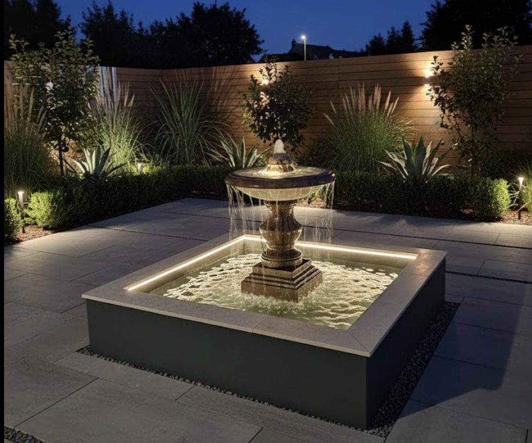 This fountain can be beautifully lit up at night with a set of LED lights Pleas click here to see