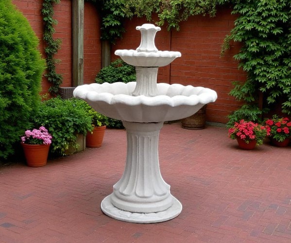 Large Bowled 2 Tiered Barcelona Fountain. This large and well proportioned fountain is fully self contained. 2 tiers, very stylish design. Origin is from Spain so it has a very Mediterranean feel.