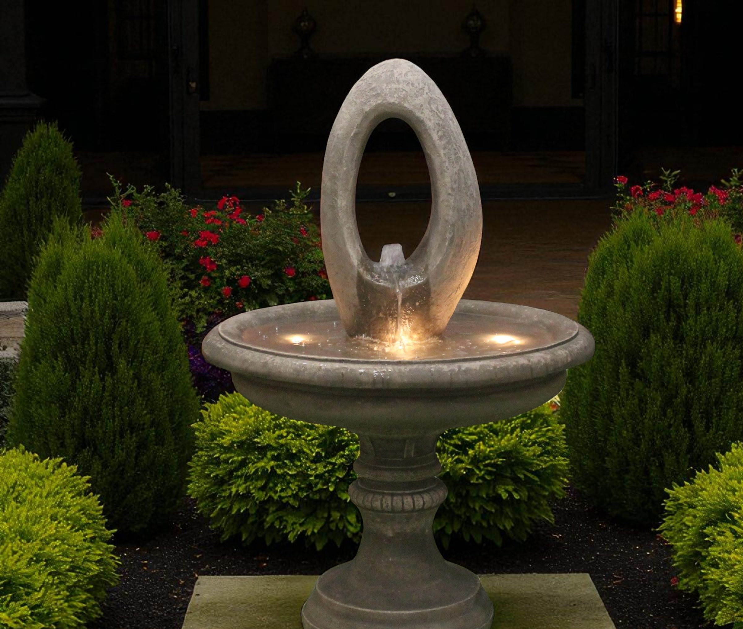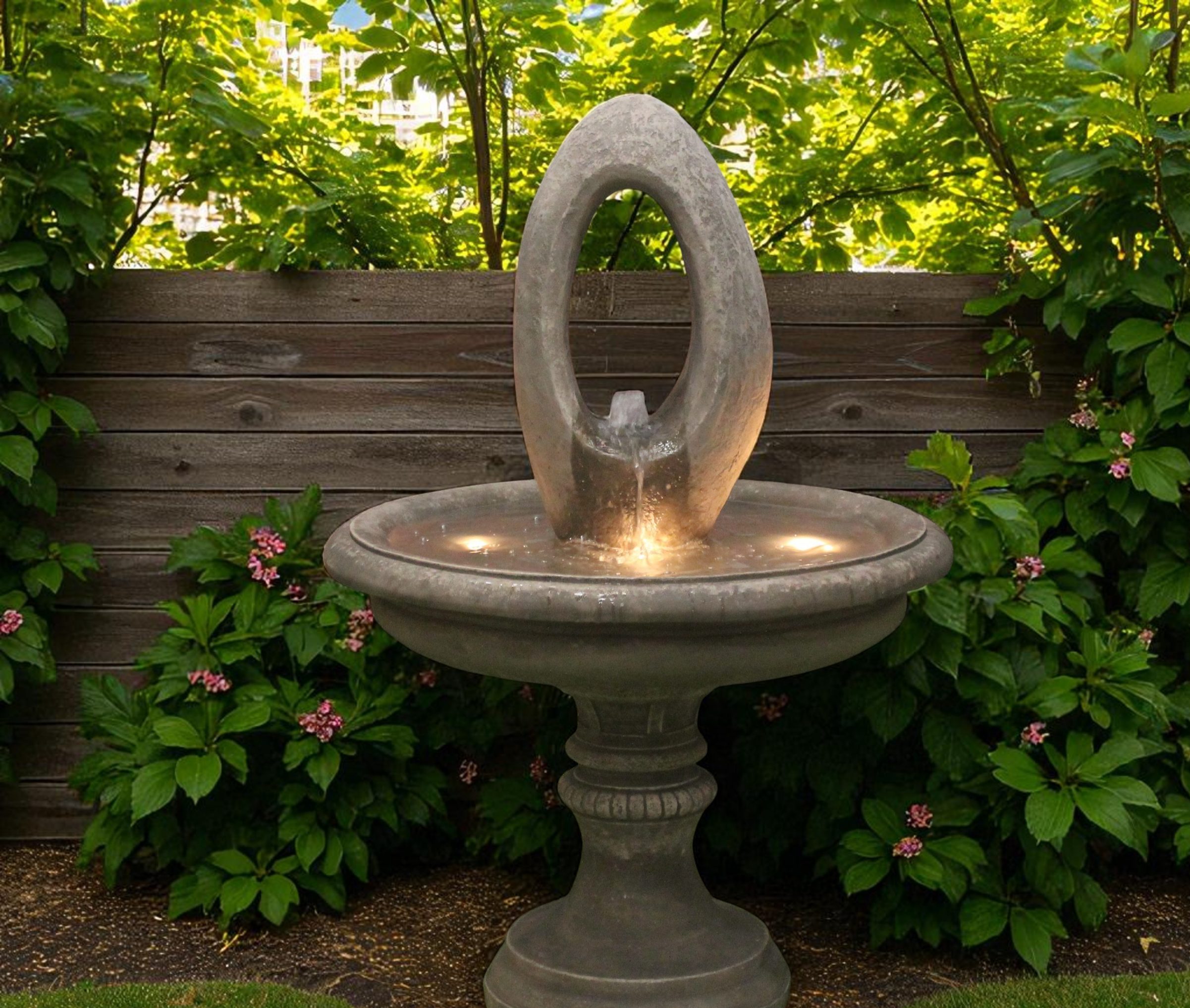 This fountain can be beautifully lit up at night with a set of LED lights Pleas click here to see