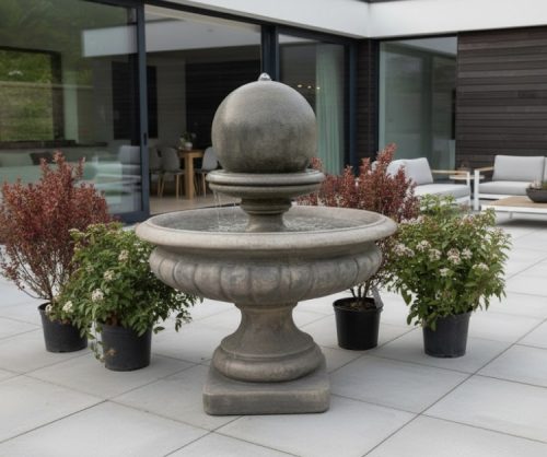 single Regis fountain with our exclusive double pool design. Simply lay the base sections onto a level flat surface, place the liner in the pool and fill with water, placing the coping stones on top, sandwiching the the liner between and cutting away any excess liner. , fully self-contained with no need for an external water supply.