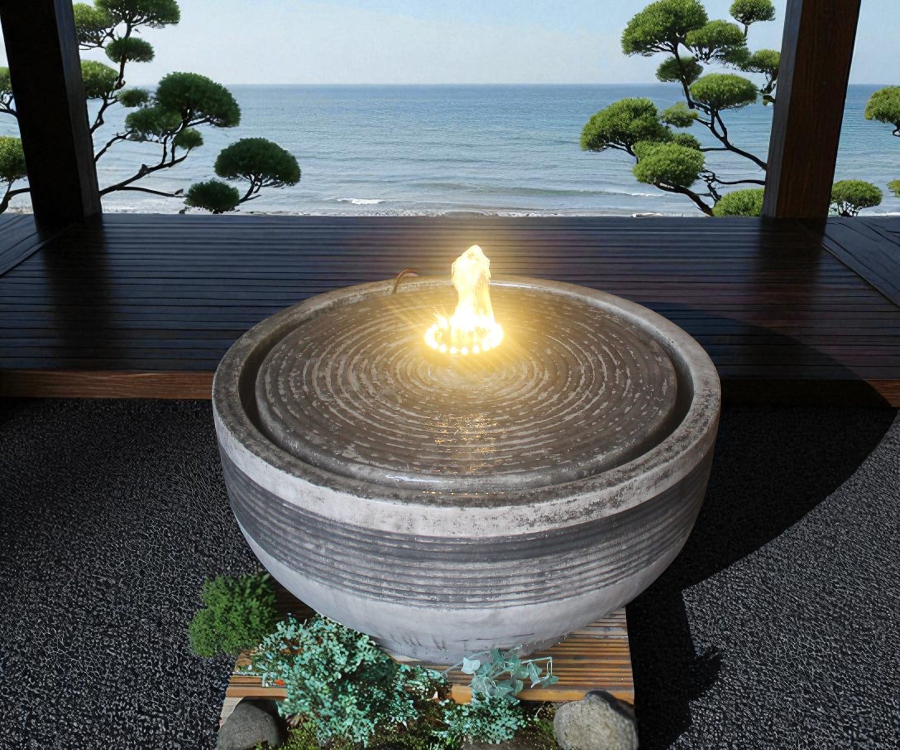 This fountain can be beautifully lit up at night with a set of LED lights Pleas click here to see
