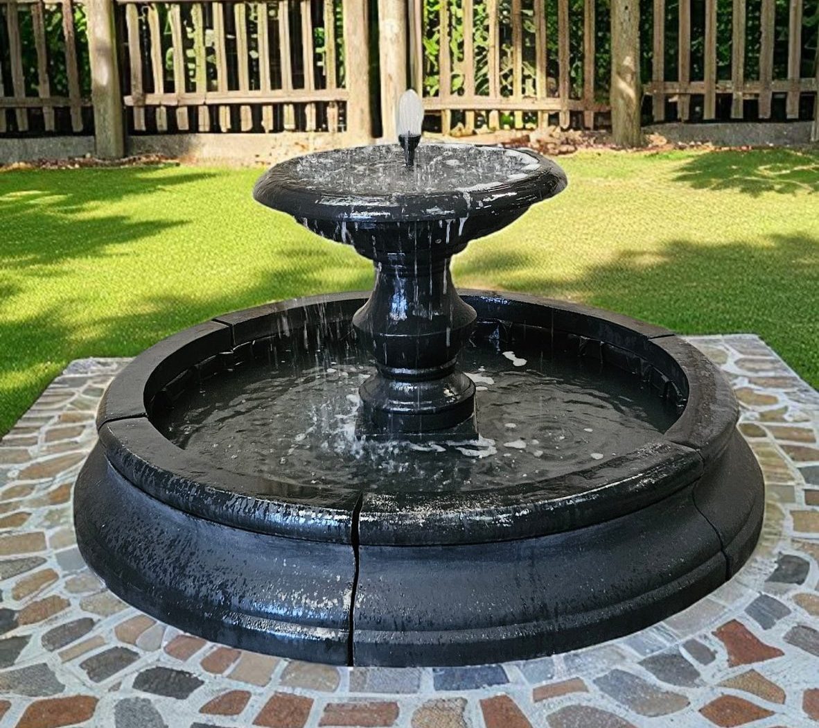 Single tiered Regis Fountain, Small Cambridge Double Pool Surround Well balanced fountain with our exclusive double pool design.