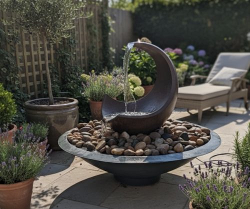 All supplied with pumps, hoses and instructions – all pumps come with 10m of cable. As self-contained fountains, the pump sits into the centre of the largest bowl, hidden within the fountain structure. Water from the pump is pumped up through the centre of the fountain, then to be cascaded back down over the fountain bowls back into the main bowl.